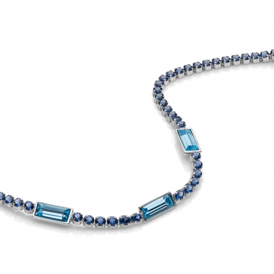 Grazioso bracciale in Argento 925 rodiato con cristalli e pietre Cubic Zirconia sulle tonalità del blu.