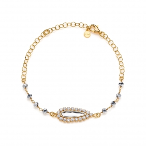 Elegante bracciale in Argento 925 rodiato, con motivi geometrici alternati a dei fiori, che risulta molto lucente grazie alle pietre Cubic Zirconia di alta qualità.