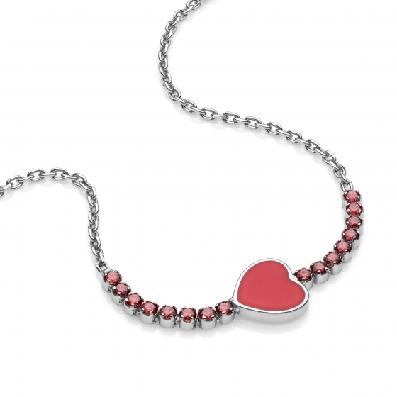 Grazioso bracciale in Argento 925 rodiato con tennis e cuore smaltato al centro.