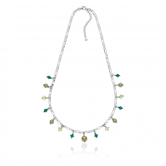 Graziosa collana in Argento 925 rodiato con perle e cristalli sui toni del verde.
