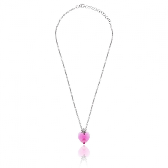 Graziosa collana in Argento 925 rodiato, con cuore di cristallo pendente, rifinito da un fiore con pietra Cubic Zirconia al suo interno.